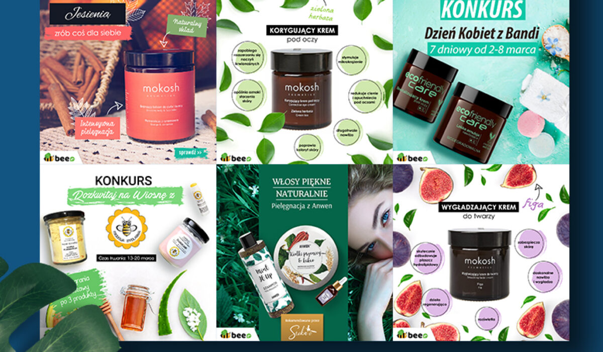 Projekty banerów na potrzeby marki Bee.pl – e-commerce, remarketing online oraz Social Media. Poniżej kreacje wewnętrznych stron typu LandingPage Bee.pl oraz drukowanych materiałów promocyjnych:
