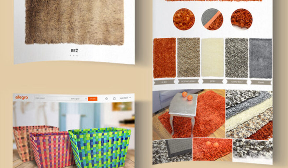 Seria projektów wewnętrznych stron typu Landing Page stworzonych na platformę Allegro przedstawia asortyment tekstyliów domowych takich jak dywany, kosze, akcesoria łazienkowe, a także ogrodowe. Poniżej przedstawione są projekty wewnętrznych stron Landing Page stworzonych na platformę e-handlu Allegro, projekt graficzny witryny internetowej, a także materiały marketingowe firmy Kontrast: