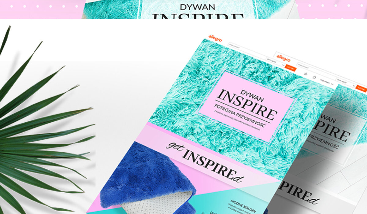 Seria projektów wewnętrznych stron typu Landing Page stworzonych na platformę Allegro przedstawia asortyment dywanów z linii INSPIRE. Poniżej przedstawione są projekty wewnętrznych stron Landing Page stworzonych na platformę e-handlu Allegro, projekt graficzny witryny internetowej, a także materiały marketingowe firmy Kontrast: