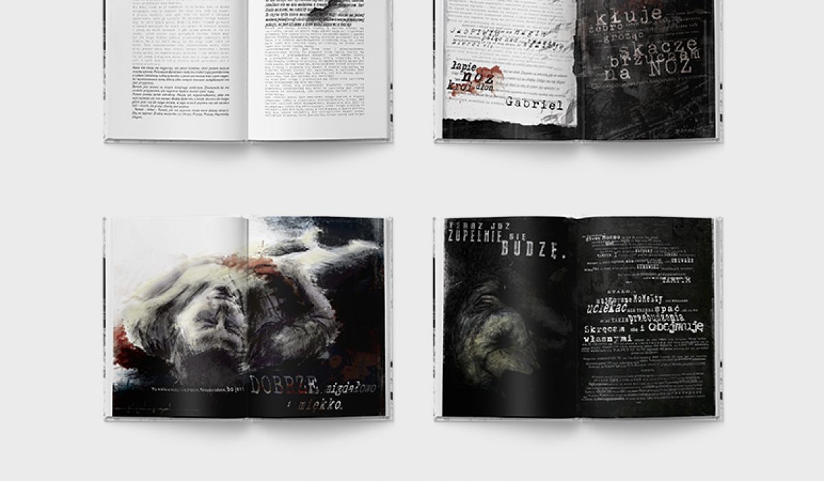 Projekt graficzny powieści uhonorowanej nagrodą „Książka Lata 2002” pt. „Heroina” będący interpretacją artystyczną debiutu książkowego Tomasza Piątka, byłego narkomana. Książka została opracowana w stylistyce Grunge Art, natomiast sposób zaakcentowania przekazu za pomocą tekstu inspirowany twórczością Davida Carsona i jego ideą eksperymentalnej typografii, zwanej też „grunge typografią”. Projekt obejmował kilka etapów pracy od stworzenia ilustracji techniką tradycyjną, przez ich warstwową stylizację w duchu grunge art, po nałożenie i stylizację tekstu, aż do druku.