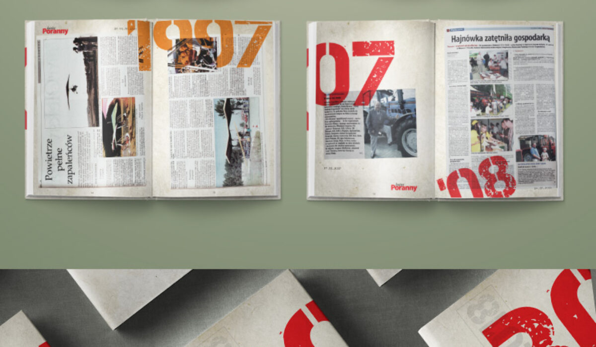 Projekt pamiątkowej książki z okazji 30 lat współpracy Pronaru z Polska Press Białystok oparty na zdjęciach artykułów z gazet na przestrzeni 30 lat działalności Pronaru. Poniżej projekty materiałów reklamowych oraz prezentacja projektów wewnętrznych LP PSS Społem Białystok: